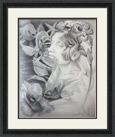 The See...the space where thought drifts. A face submerged among fish, shells and drifting forms, a mind at rest but not empty—absorbing, listening, sensing its surroundings. The sea is not just a place, but a state: reflective, fluid, ambiguous and acceptably unsettling.