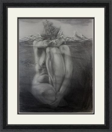 Underlying all things is the female body and most especially when we face storms and fears and hope for safety we wish to go home, to port, to the ground of the universe. The ship is held in the protective arm of the giant woman who lives beneath the waves...simultaneously, the ship is her head, mind, thoughts.